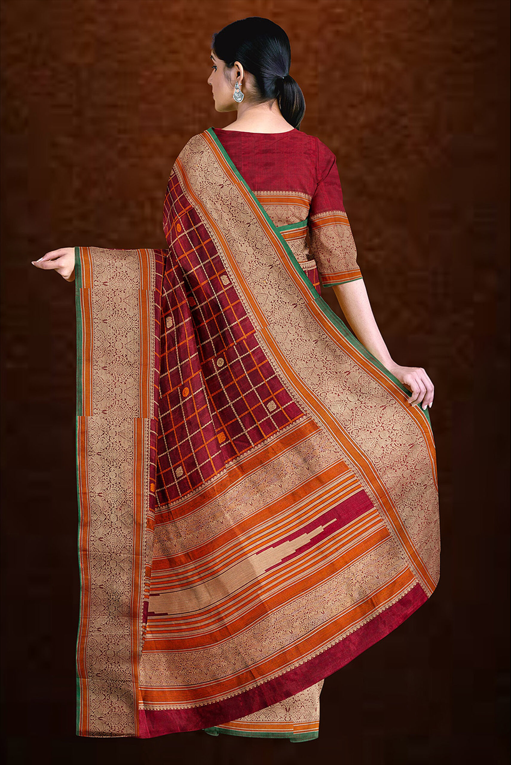 A South Indian classic woven with contrast temple borders, bringing together tradition, purity, and everyday sophistication.